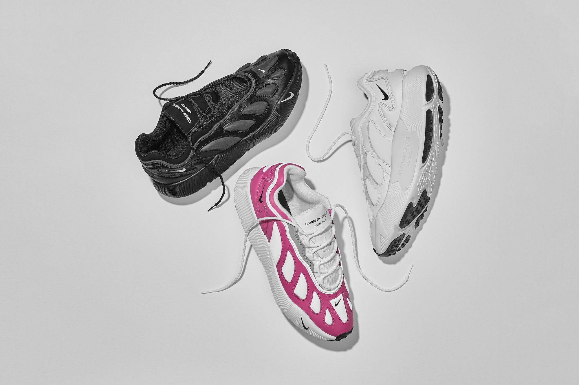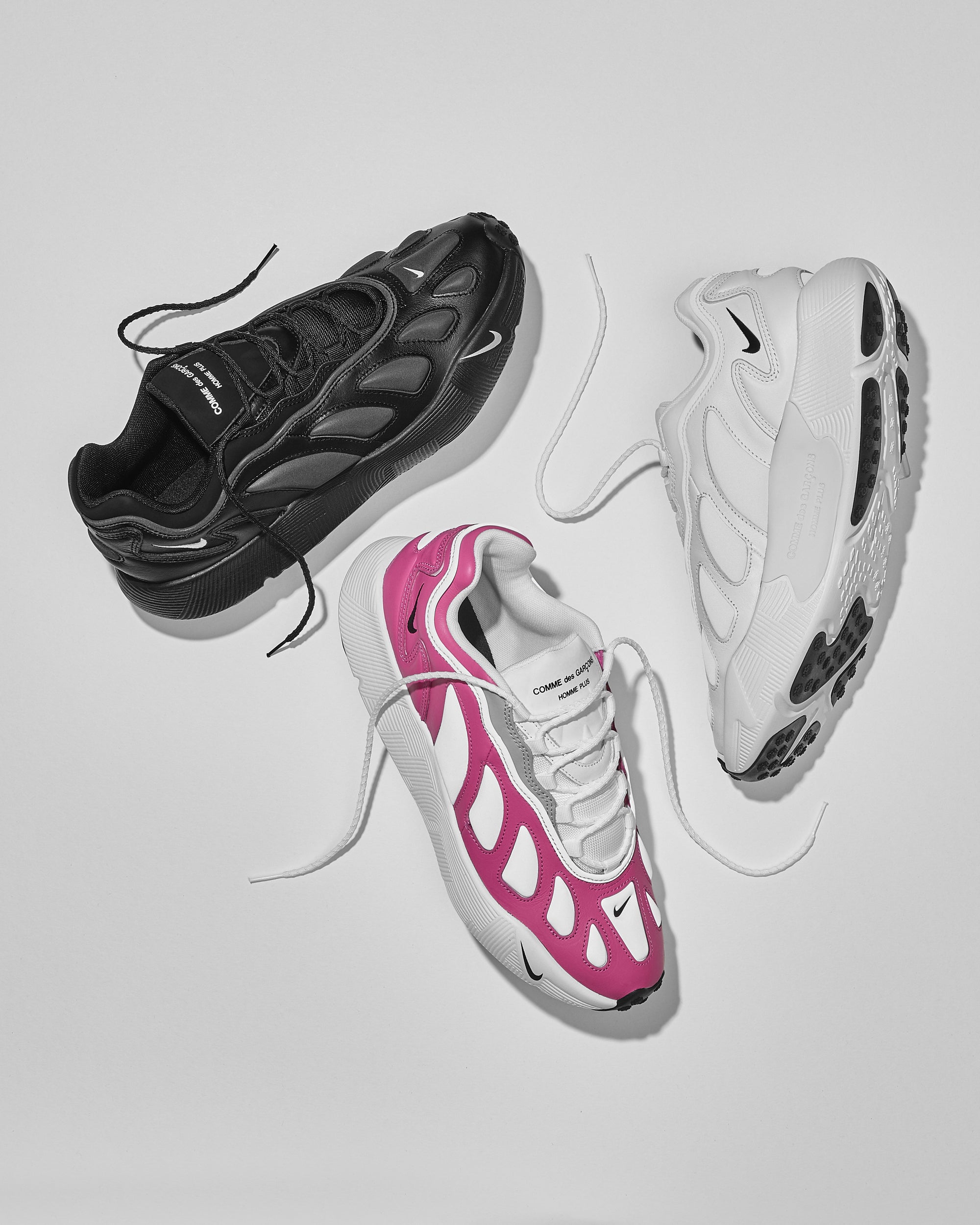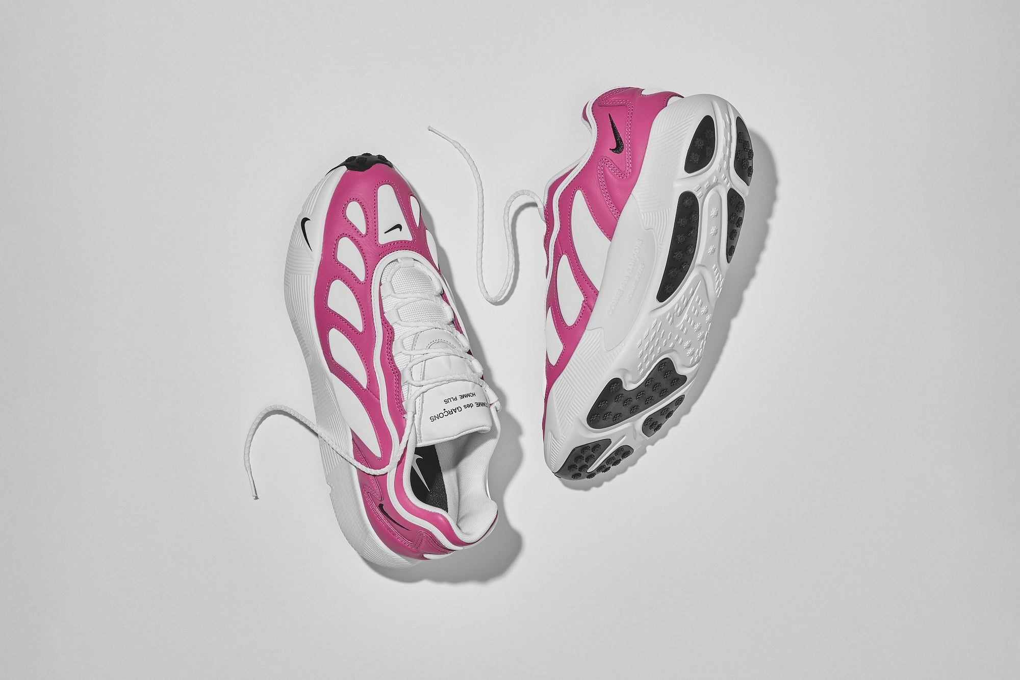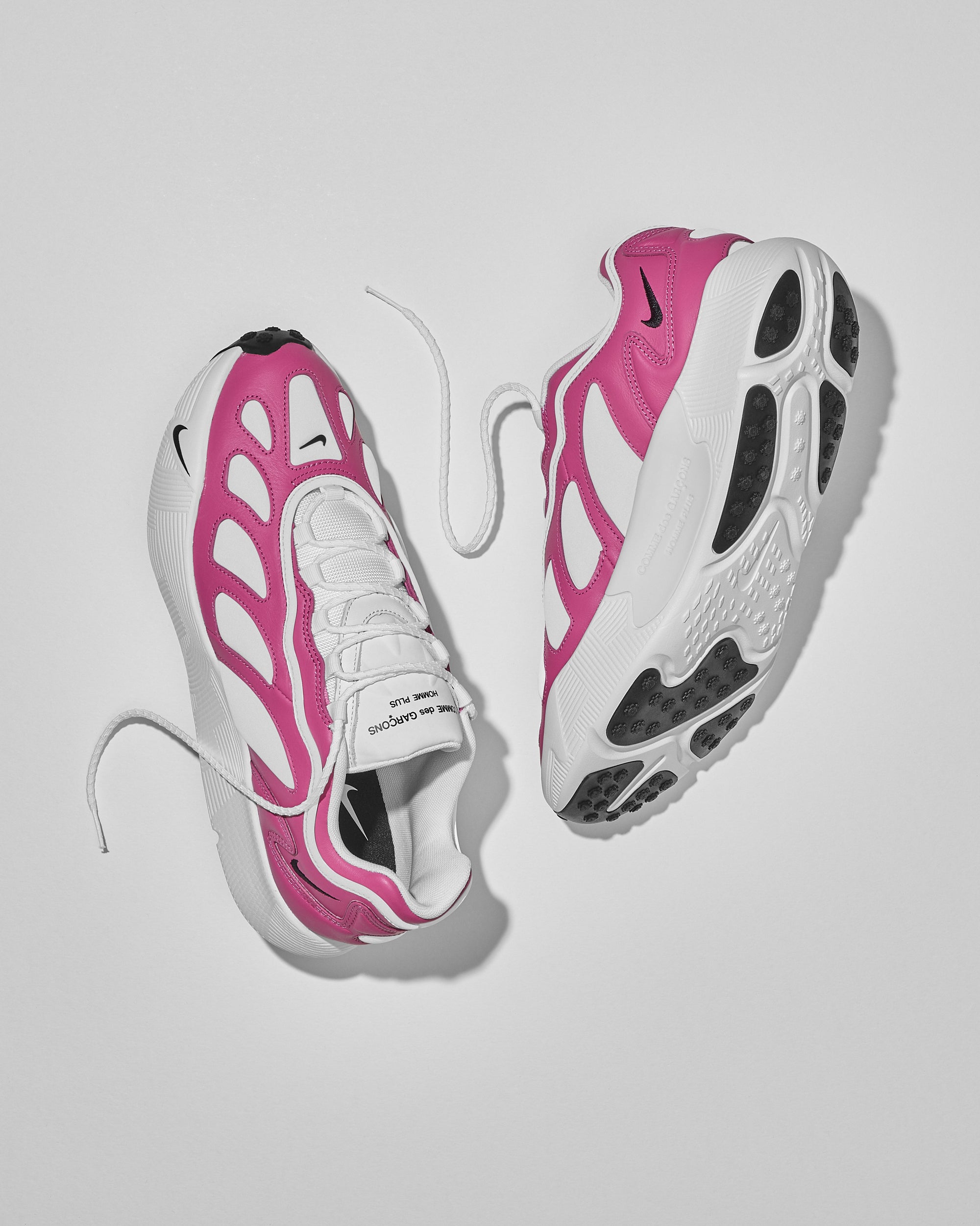 The Nike Air Max 96 has been reimagined with a wave-textured sole, blending classic design with modern innovation. First seen on the SS25 Comme des Garçons Homme Plus runway in Paris, the shoe will be released in three colourways: pink, black, and white.