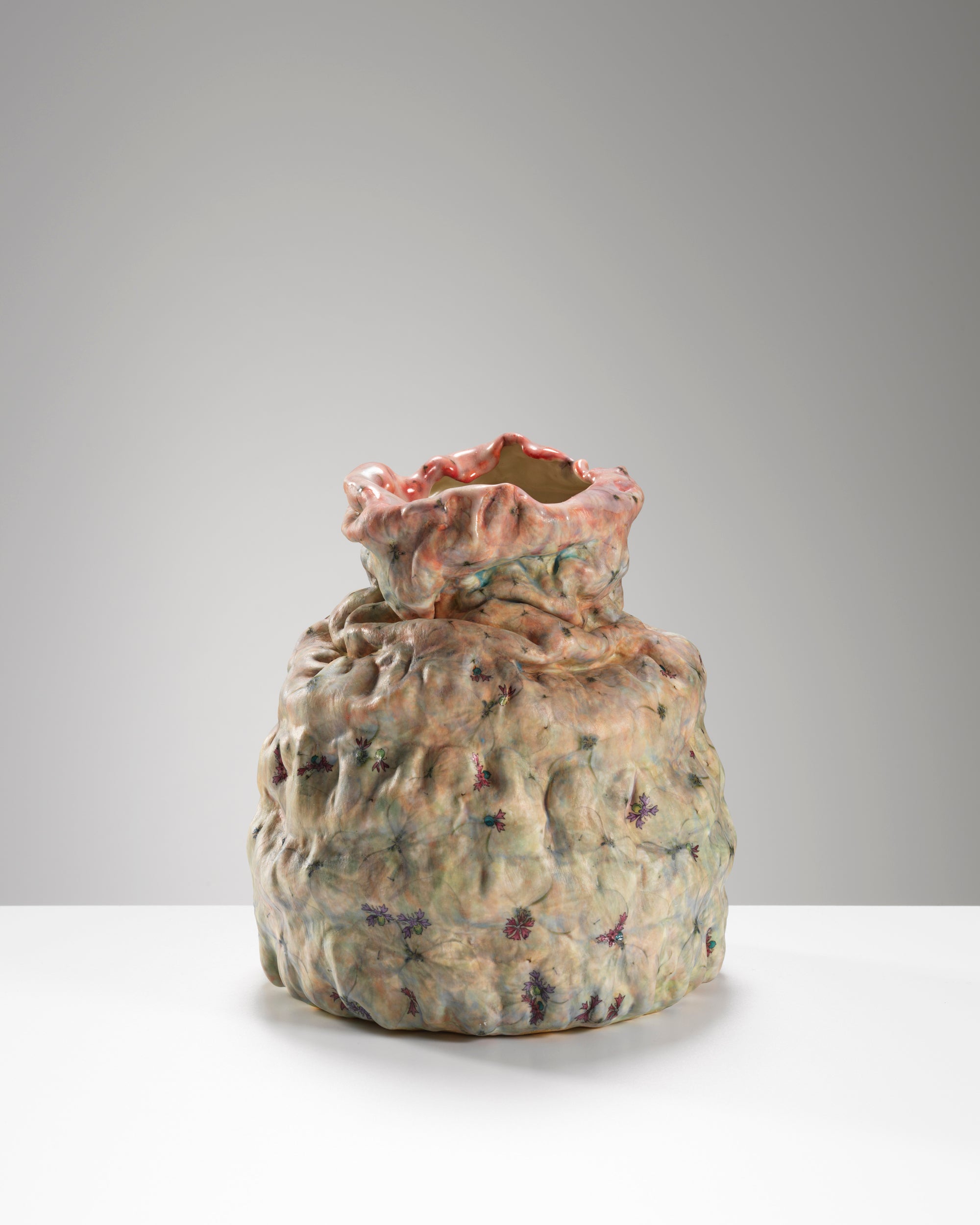 Exploring the idea of the pot as a relic, anthropomorphic qualities are revealed. Openings may resemble the lure of an orifice and bellies may be fleshy and crumpled.Early European porcelains of Meissen and Sèvres were the original reference but these symbols of perfection eliminate the mark of the maker. The imperfect touch creates a more personal response.